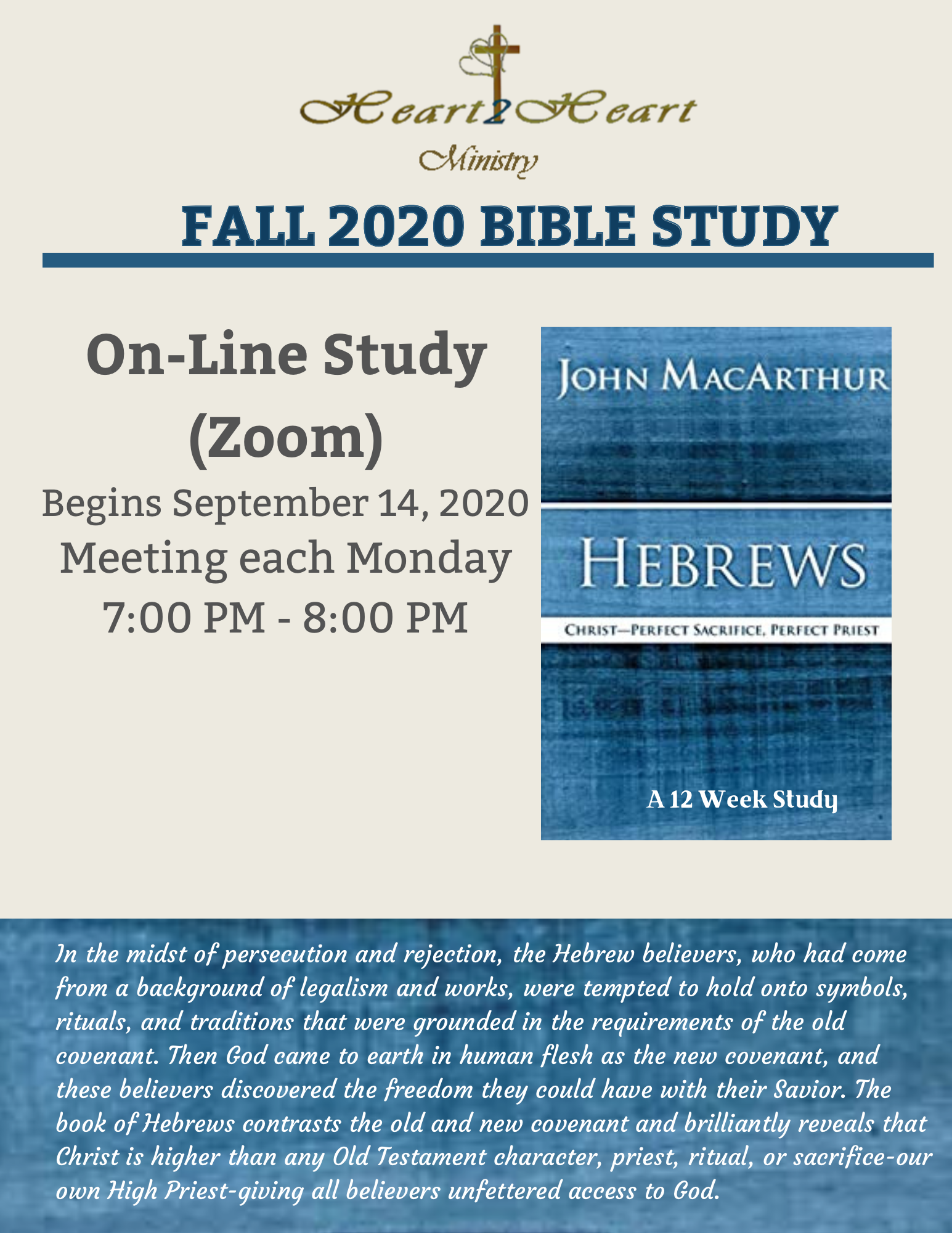 Heart2Heart announced they will offer an online study of the book of Hebrews to begin in September.